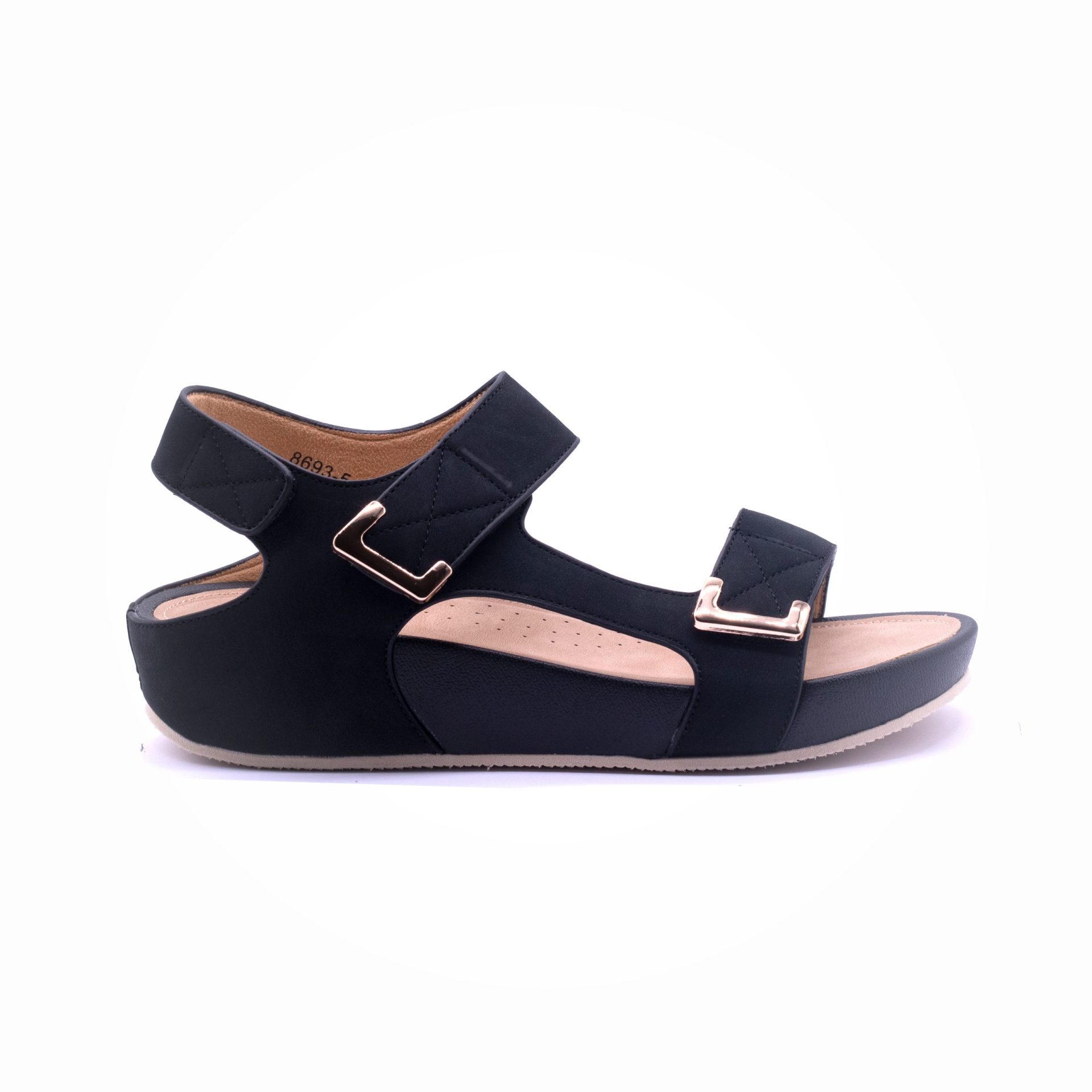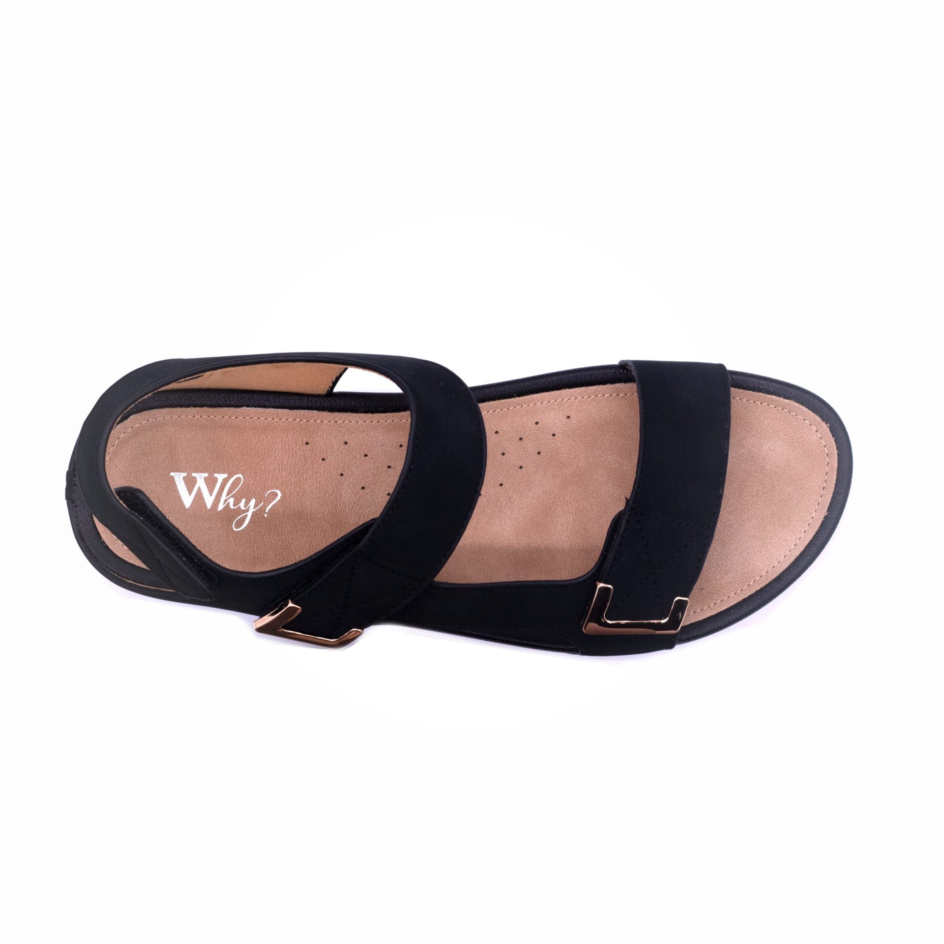 Why Gold Toned Double Strap Sandal Black